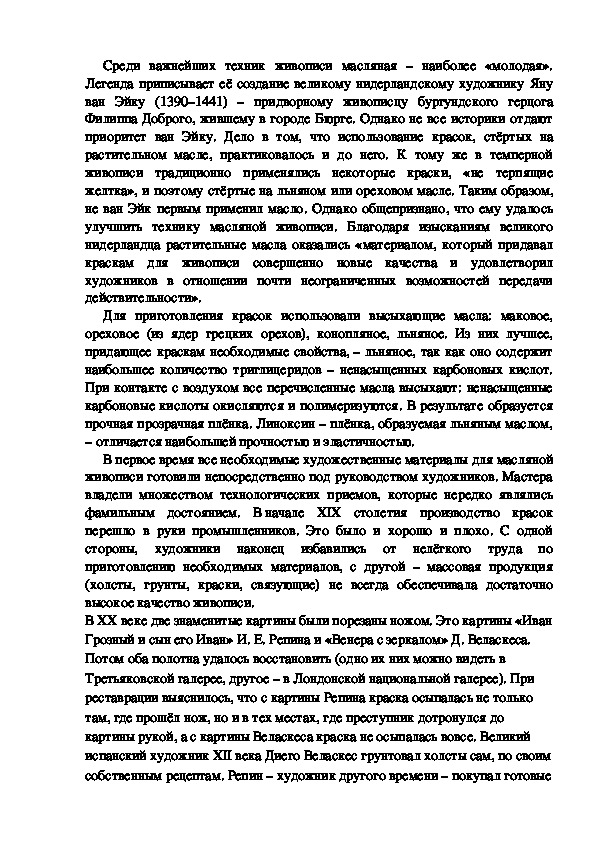 (холсты, грунты, краски, связующие) не всегда обеспечивала достаточно