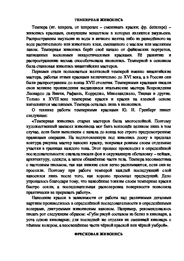 О технике работы темперными красками Ю. И. Гренберг пишет