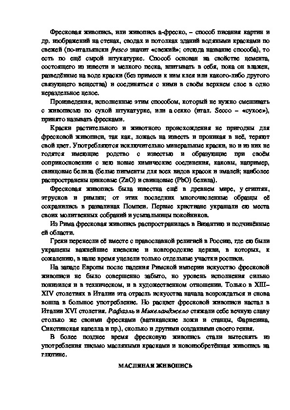 живописи готовили непосредственно под руководством художников. Мастера