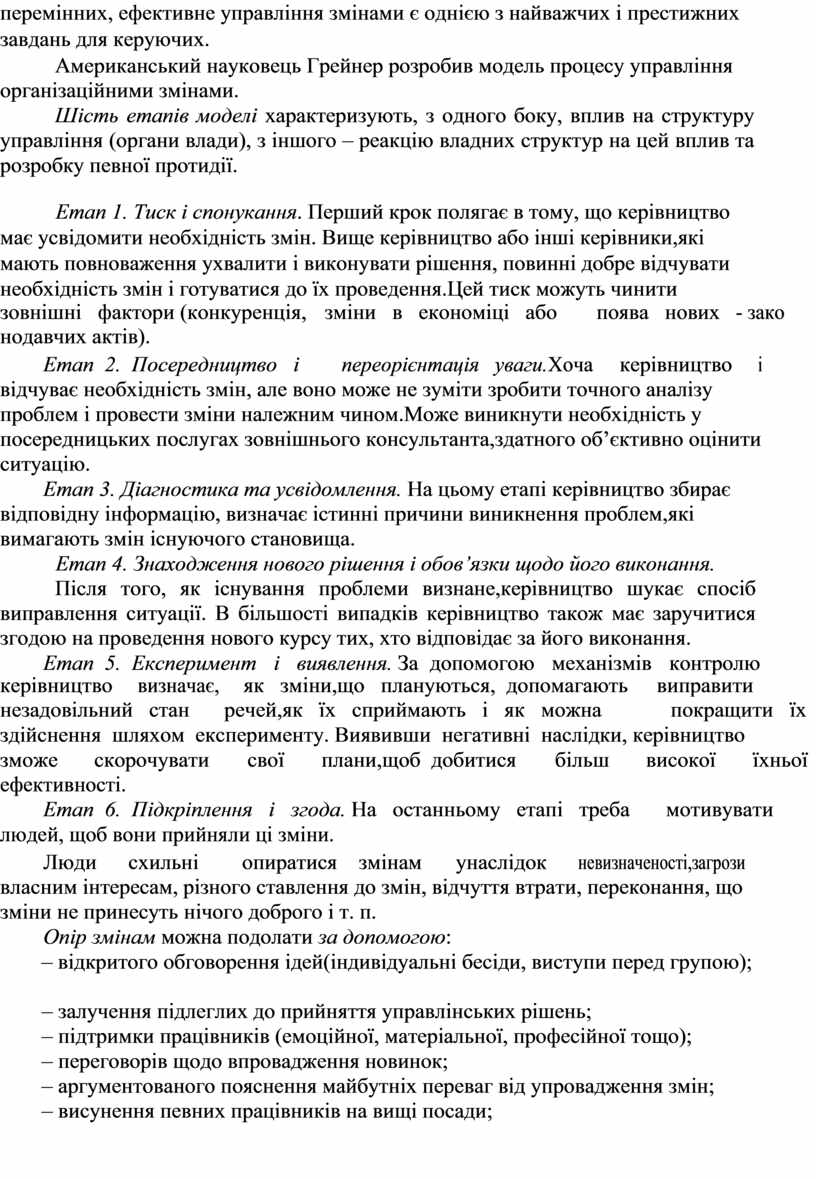 перемінних, ефективне управління змінами є однією з найважчих і престижних завдань для керуючих.