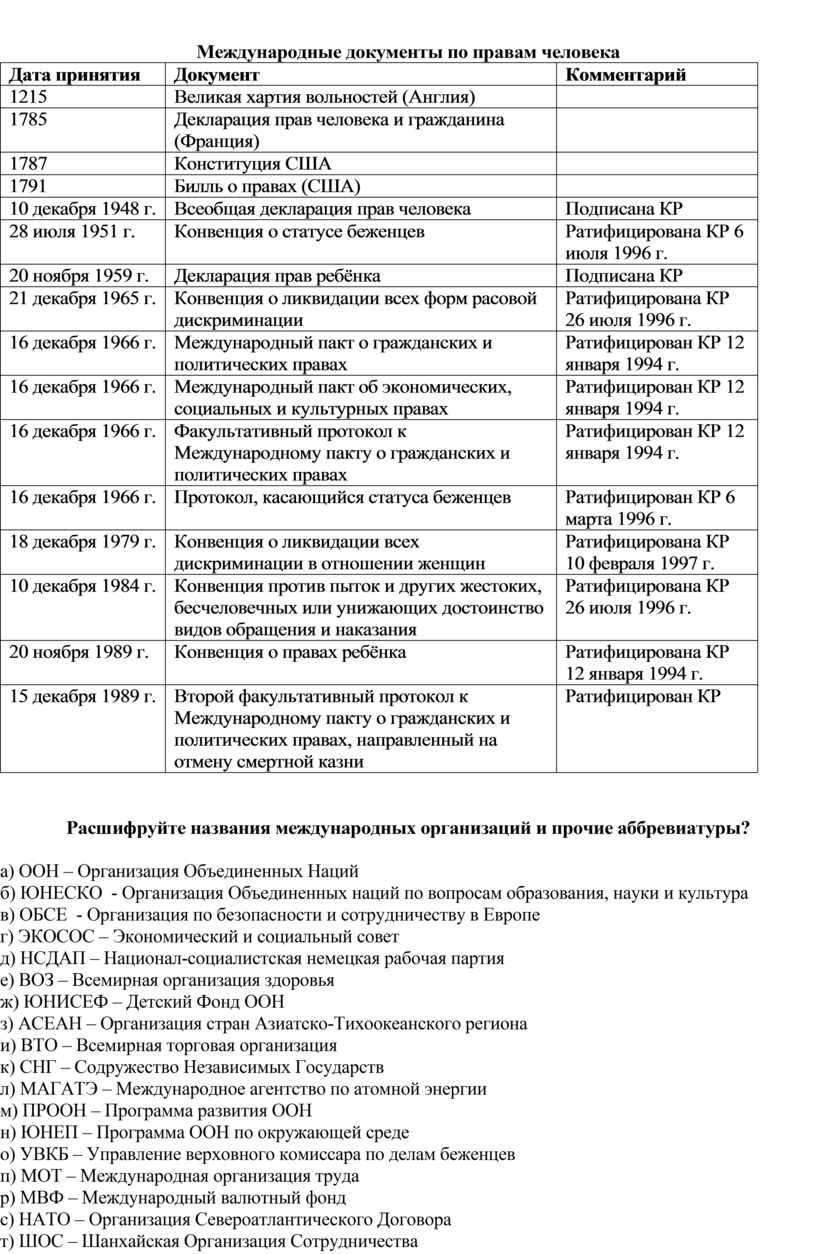 6) политические нормы (касаются отношений между личностью и властью, между социальными группами и между государством и находят свое отражение в международных правовых актах, конвенциях);