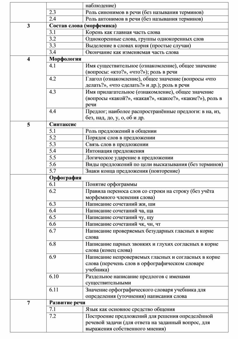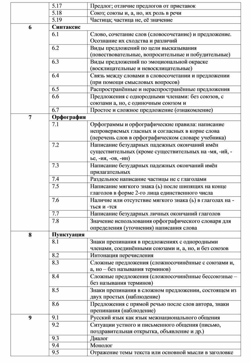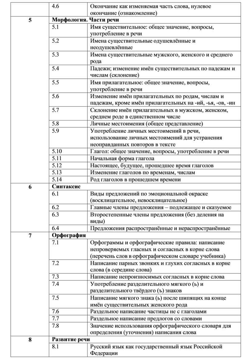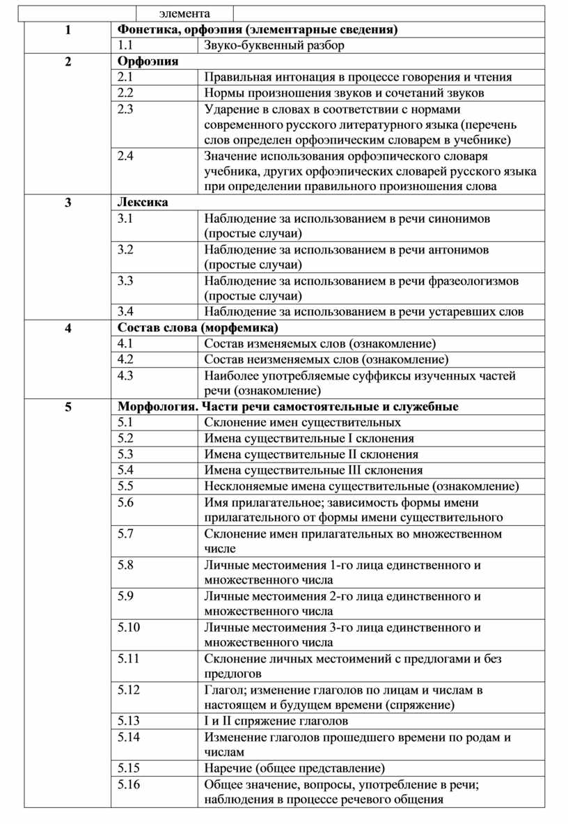 распределённых по классам проверяемых элементов содержания по учебному предмету «Русский язык»