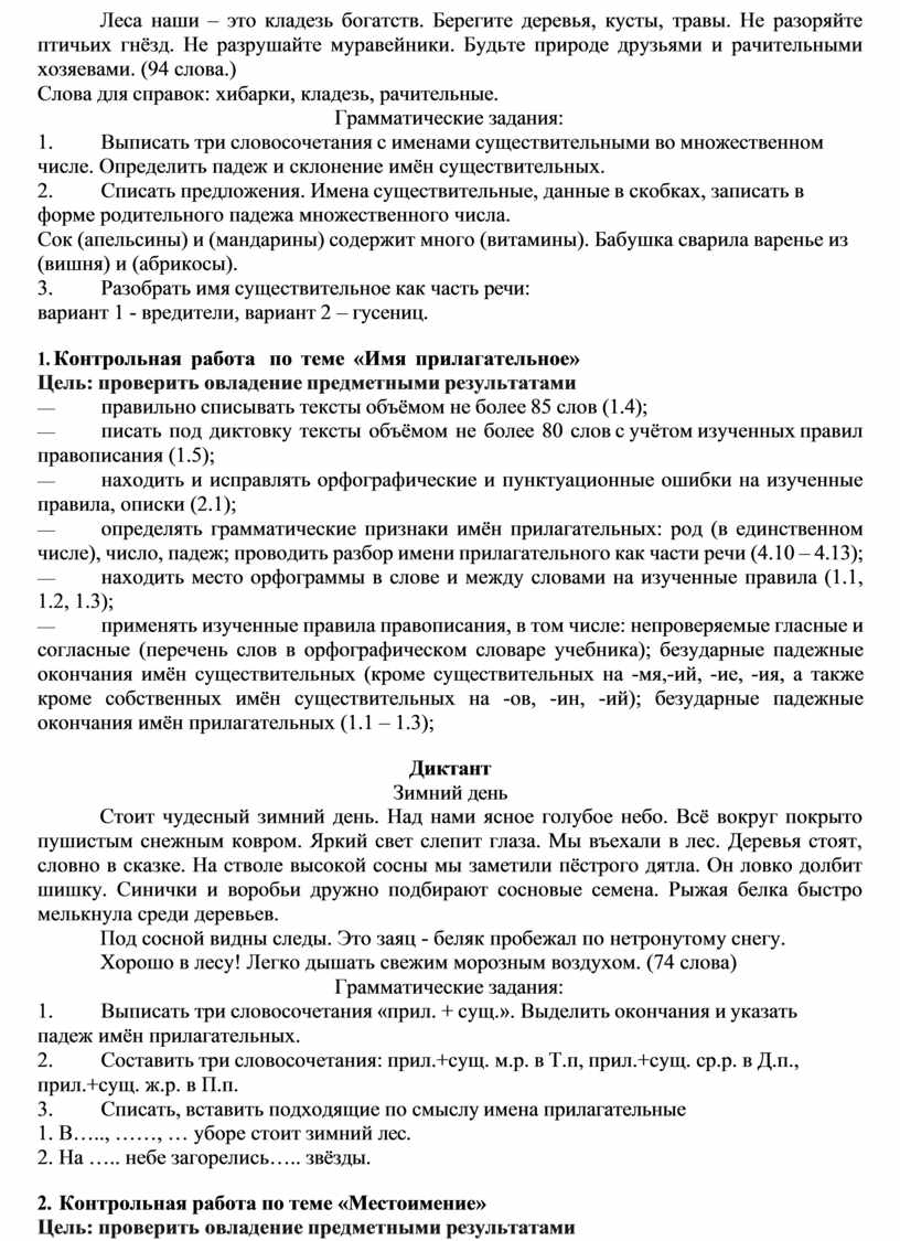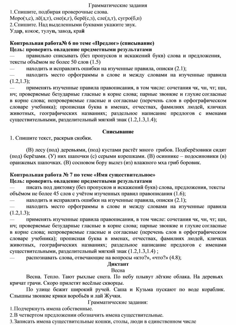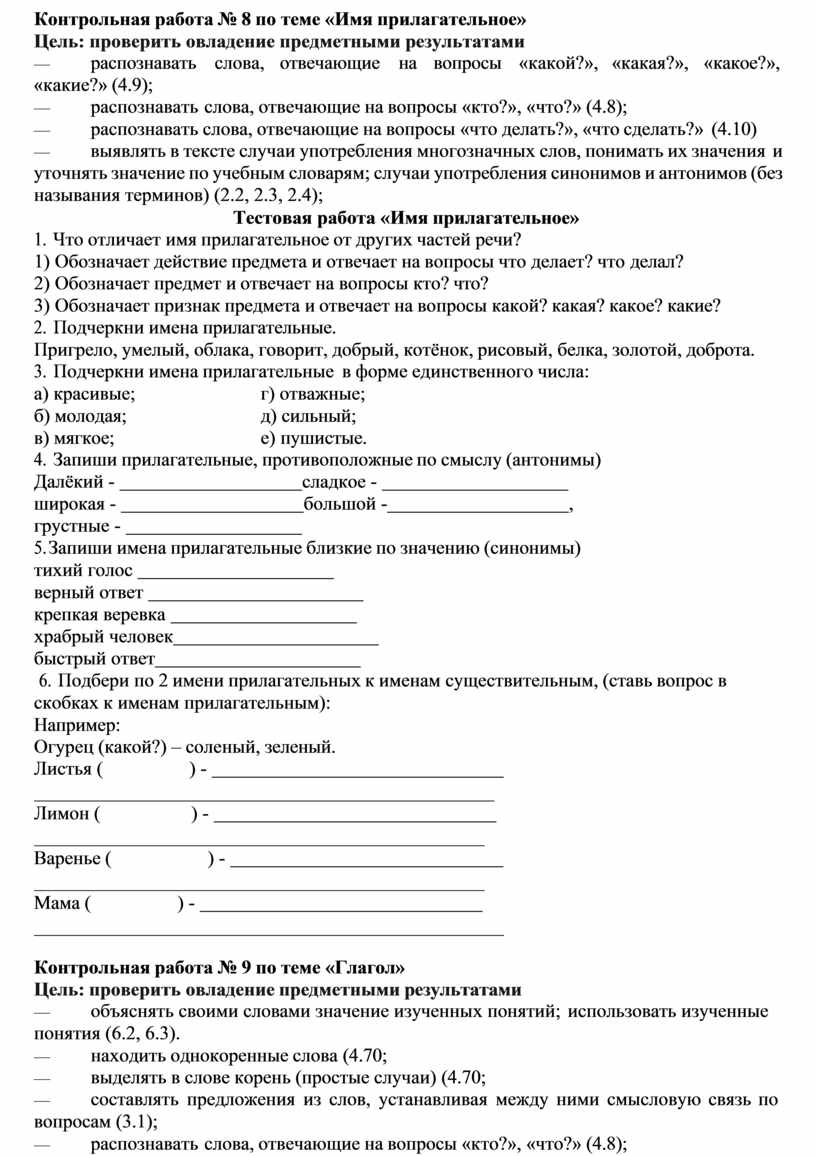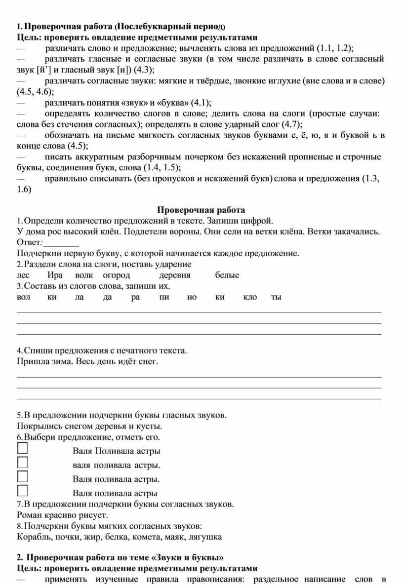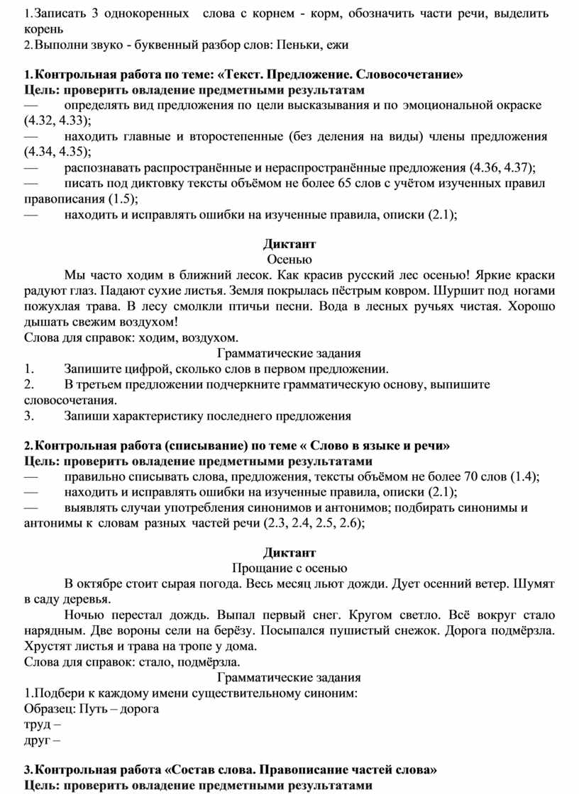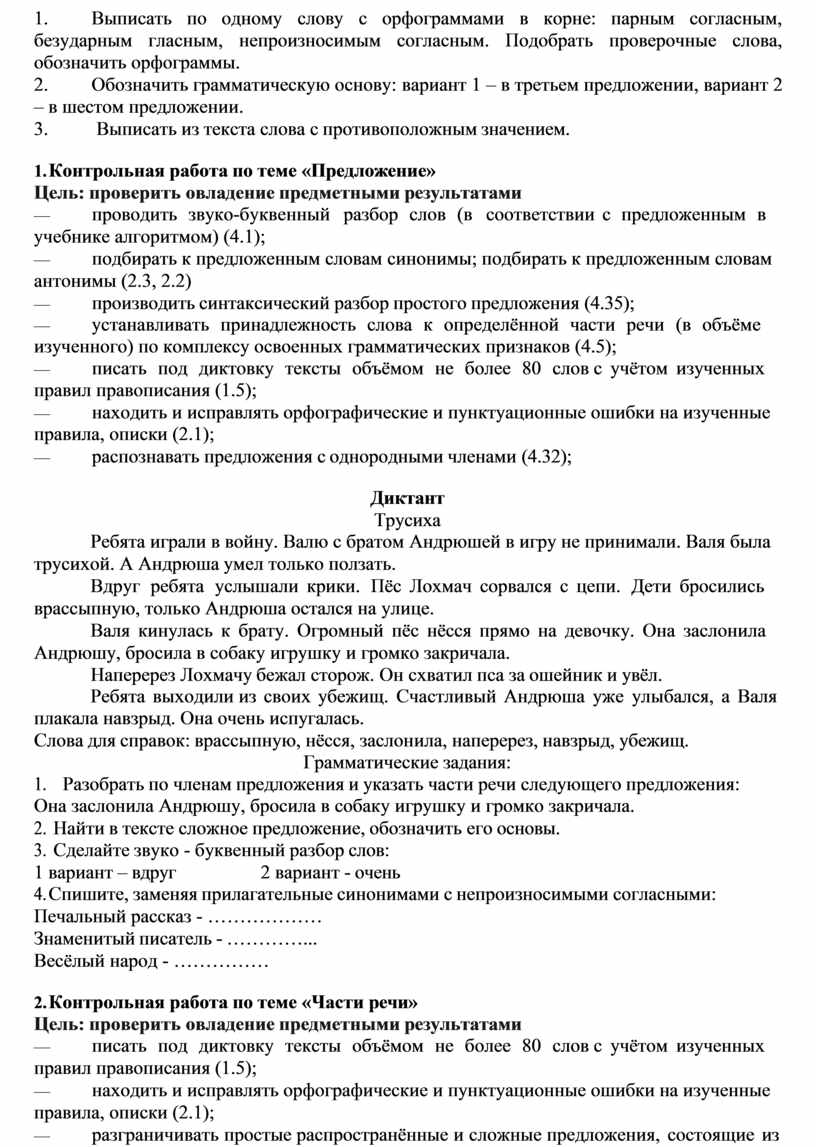 Примерные контрольно-измерительные материалы по учебным предметам ООП НОО