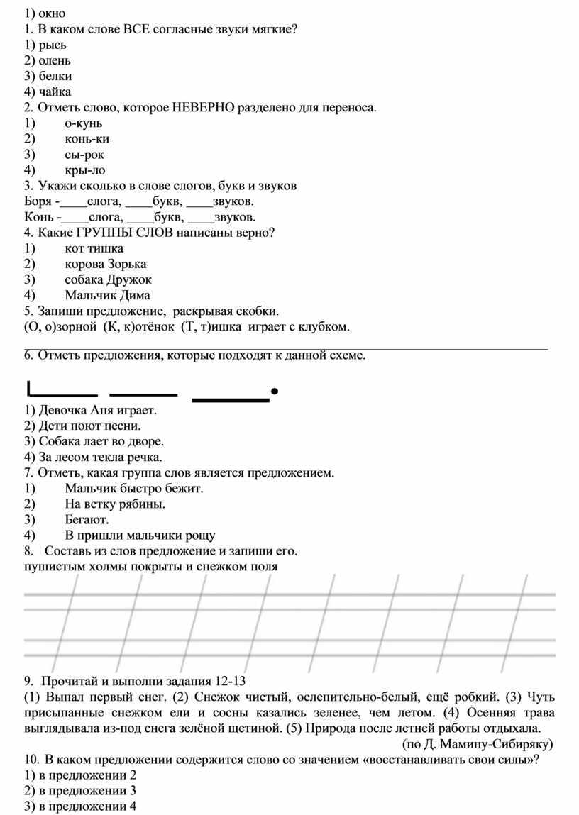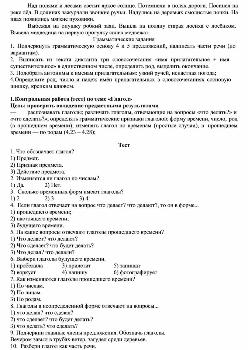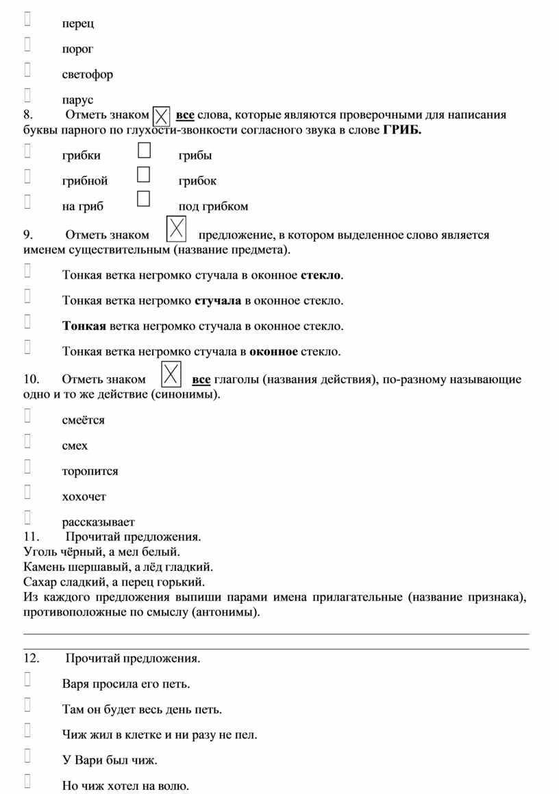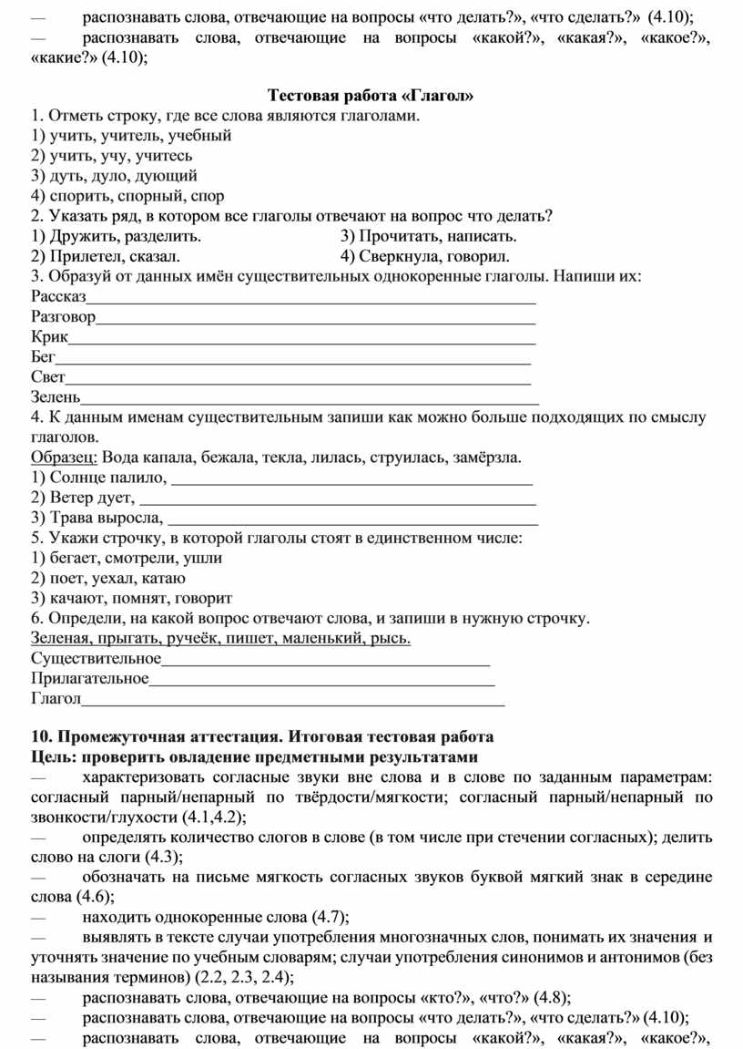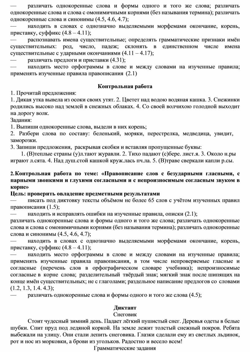 Примерные контрольно-измерительные материалы по учебным предметам ООП НОО