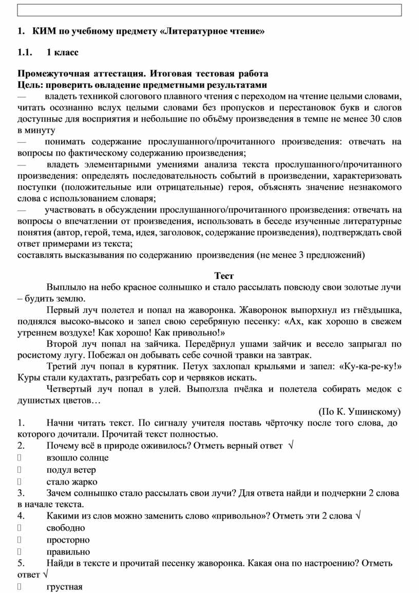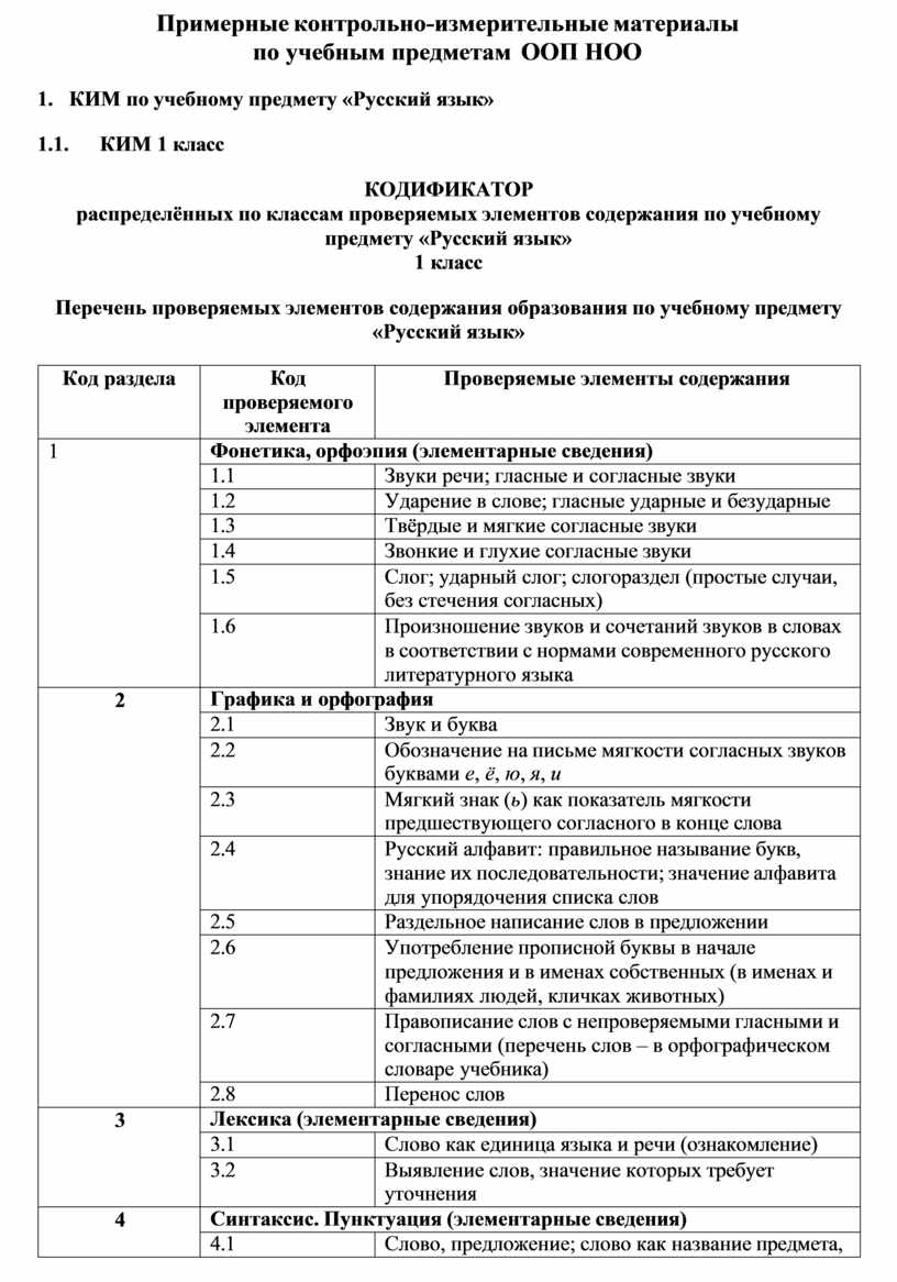 1.1. КИМ 1 класс..................................................................................................................... 5