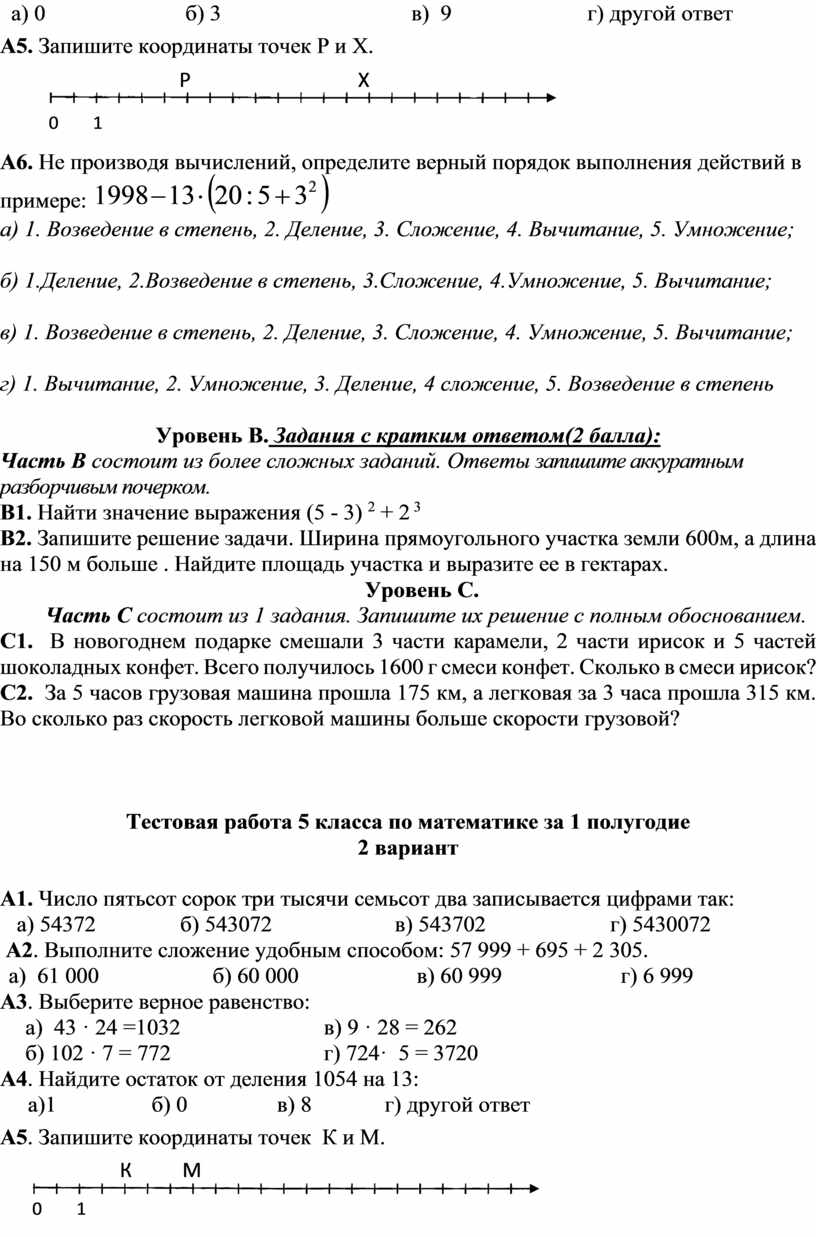 Контрольные измерительные материалы позволяют установить уровень освоения учащимися 5 класса федерального государственного образовательного стандарта основного общего образования. Тексты заданий предлагаемой модели тестовой работы в целом соответствуют формулировкам, принятым в учебниках и учебных пособиях, включенным в Федеральный перечень. Работа предназначена для проведения промежуточной аттестации обучающихся по предмету Математика .
