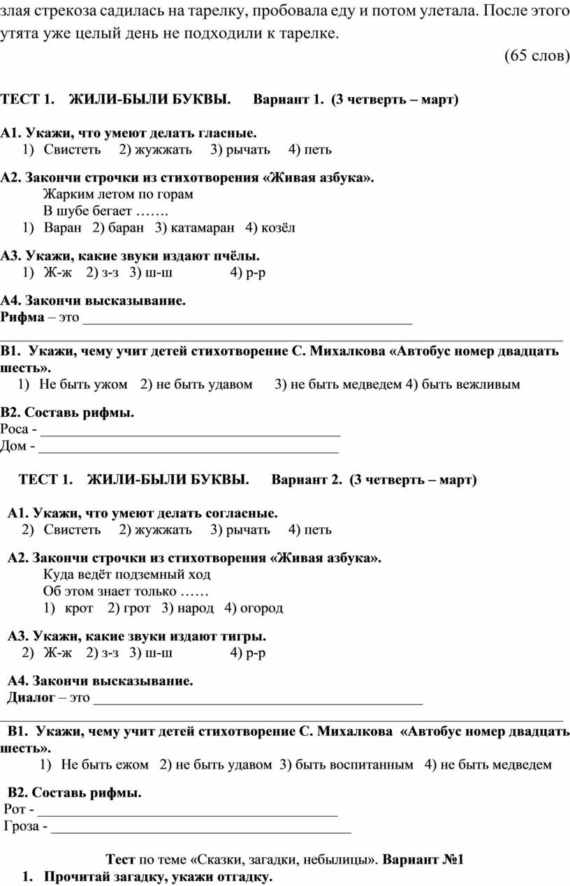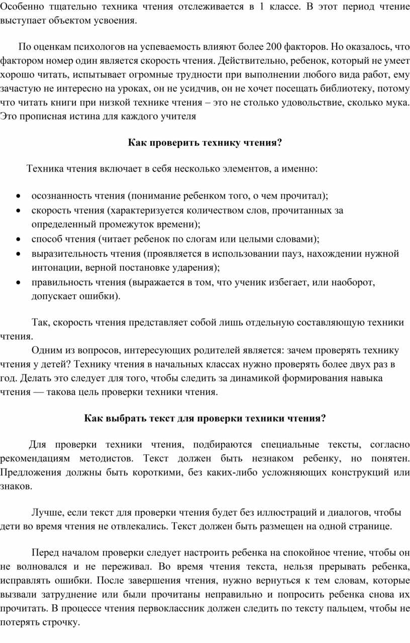 Лучше, если текст для проверки чтения будет без иллюстраций и диалогов, чтобы дети во время чтения не отвлекались. Текст должен быть размещен на одной странице.