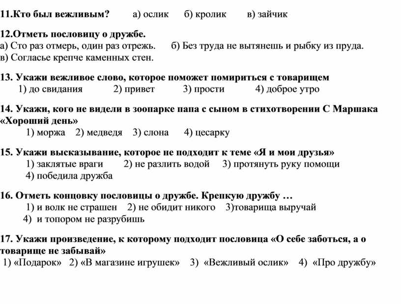 11.Кто был вежливым? а) ослик б) кролик в) зайчик