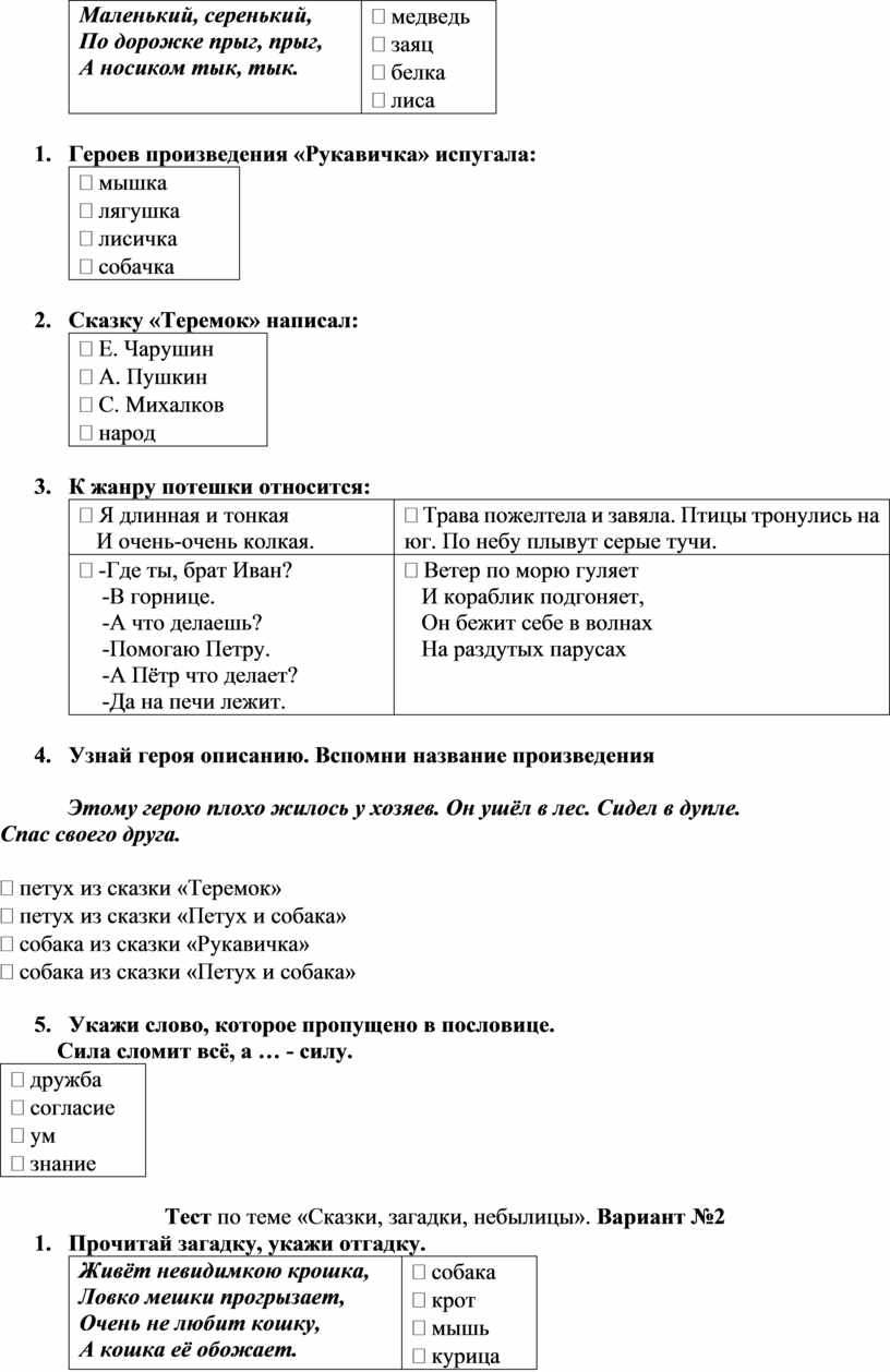 Тест по теме «Сказки, загадки, небылицы». Вариант №2
