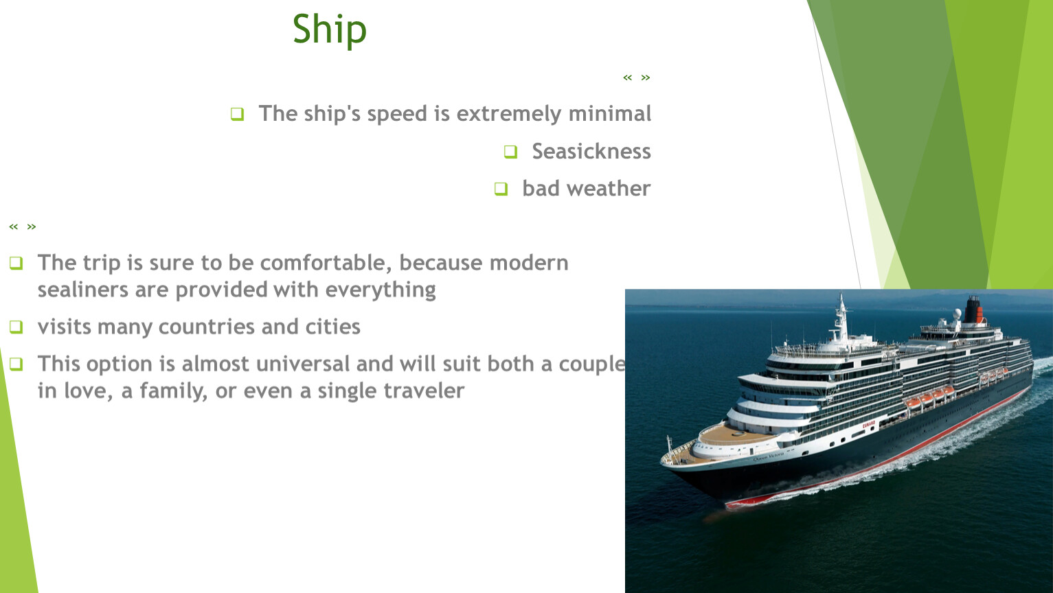 The trip is sure to be comfortable, because modern sealiners are provided with everything