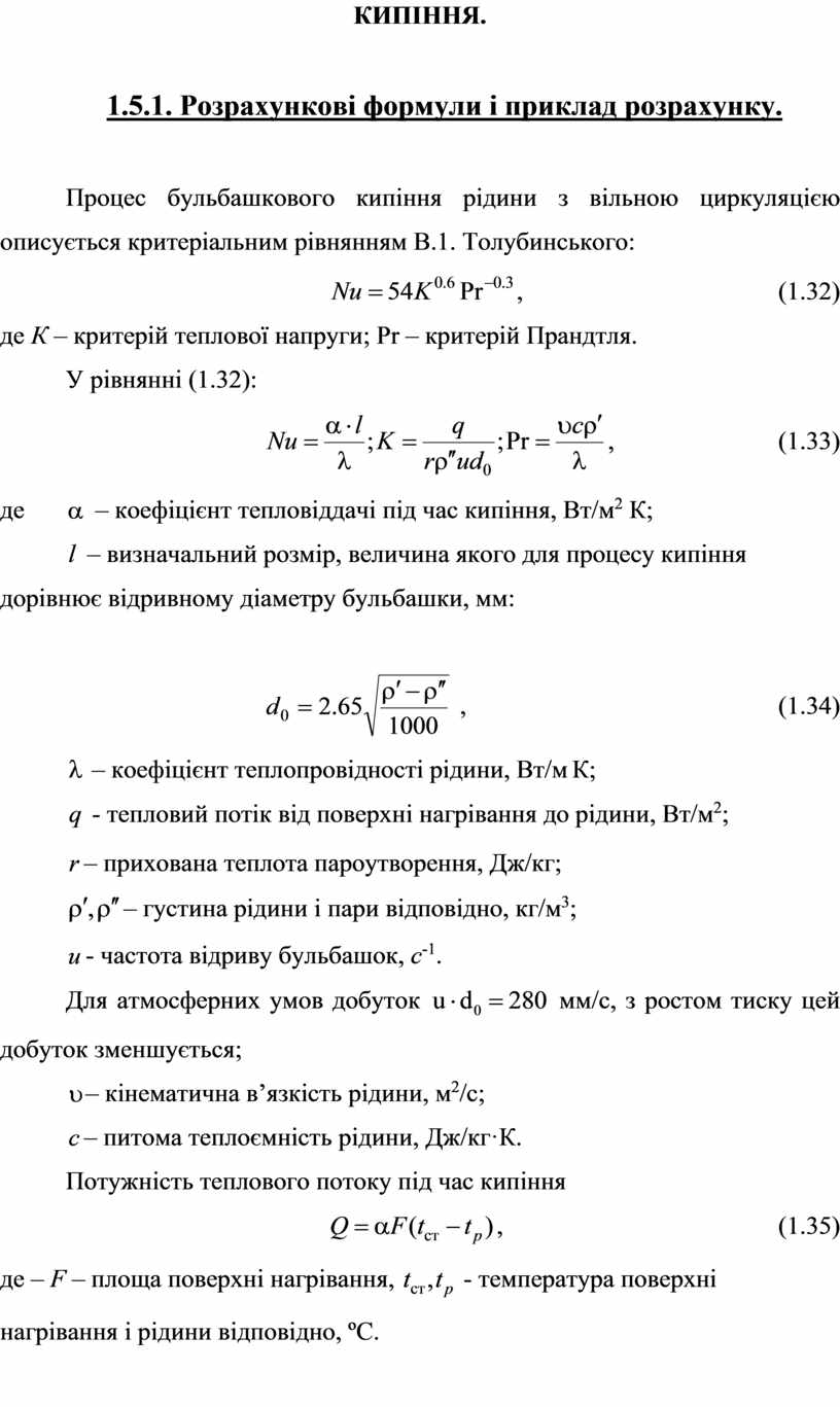 Процес бульбашкового кипіння рідини з вільною циркуляцією описується критеріальним рівнянням В.1. Толубинського: