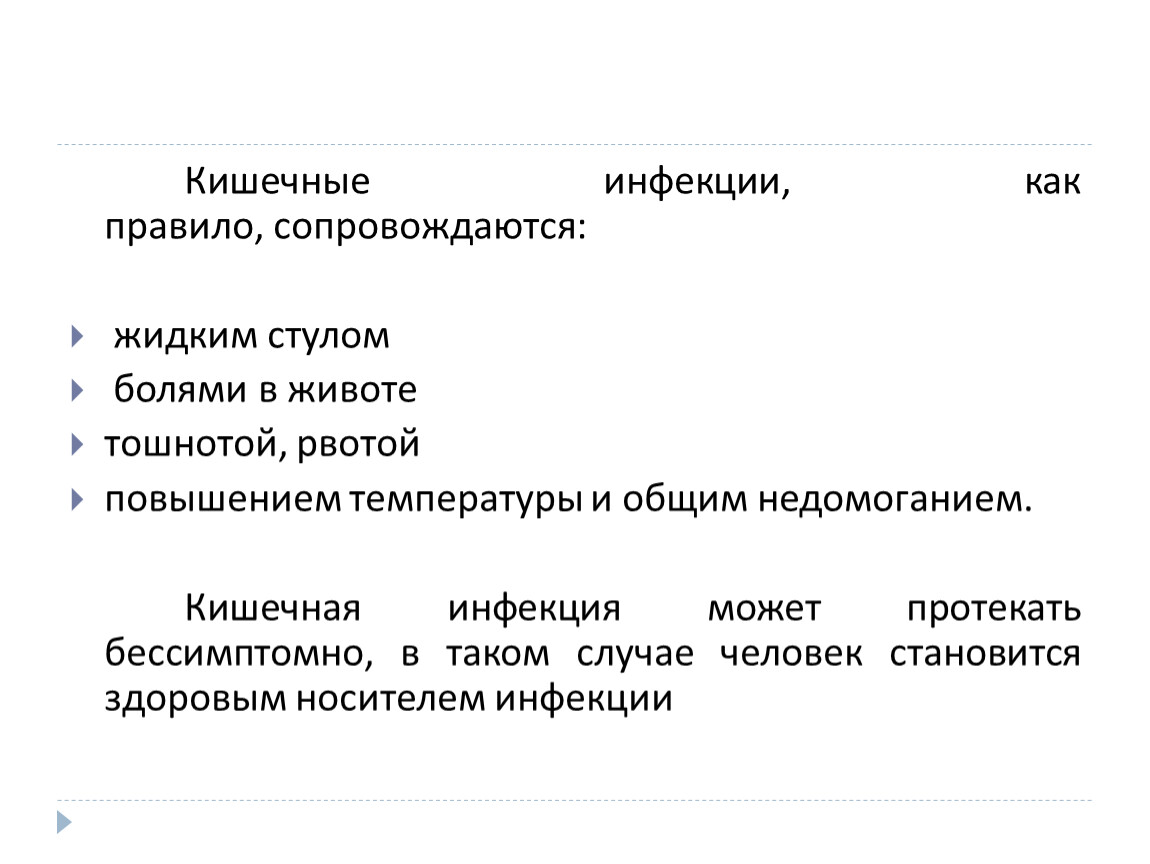 Кишечная инфекция может протекать бессимптомно, в таком случае человек становится здоровым носителем инфекции