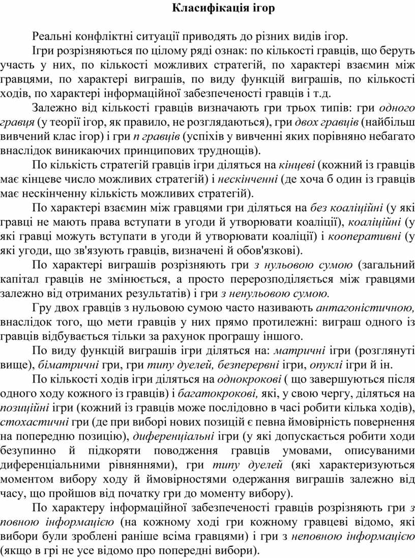 Реальні конфліктні ситуації приводять до різних видів ігор.