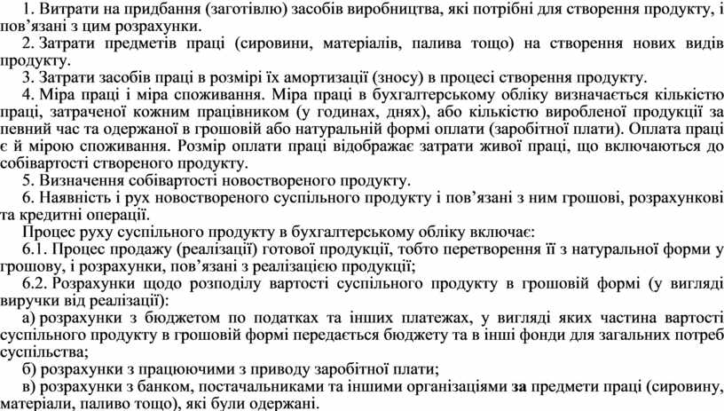 1. Витрати на придбання (заготівлю) засобів виробництва, які потрібні для створення продукту, і пов’язані з цим розрахунки.