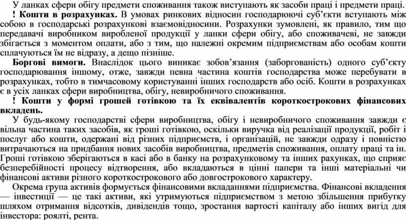 ! Кошти в розрахунках. В умовах ринкових відносин господарюючі суб’єкти вступають між собою в господарські розрахункові взаємовідносини. Розрахунки зумовлені, як правило, тим що передавачі виробником виробленої продукції у ланки сфери обігу, або споживачеві, не завжди збігається з моментом оплати, або з тим, що належні окремим підприємствам або особам кошти сплачуються їм не відразу, а дещо пізніше.