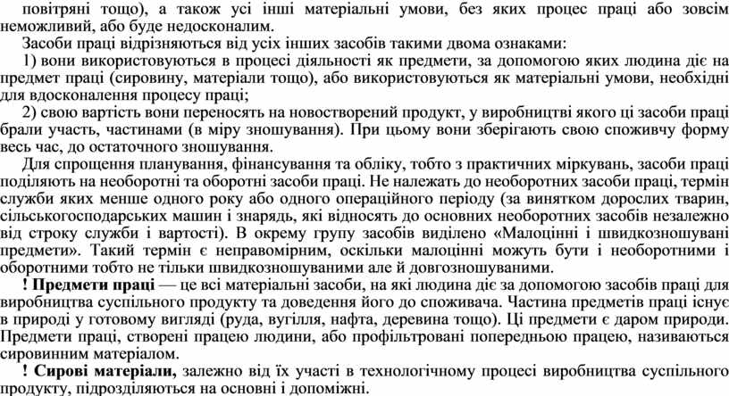 Засоби праці відрізняються від усіх інших засобів такими двома ознаками: