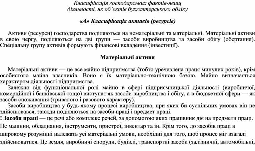 Рис. А.2.5. Класифікація активів — ресурсів, майна господарства