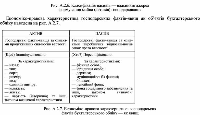 Економіко-правова характеристика господарських фактів-явищ як об’єктів бухгалтерського обліку наведена на рис. А.2.7.