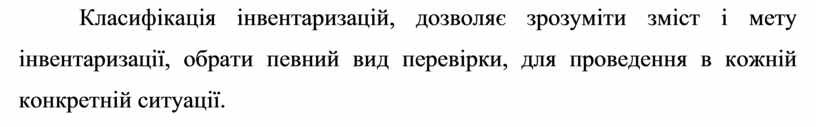 Класифікація інвентаризацій, дозволяє зрозуміти зміст і мету інвентаризації, обрати певний вид перевірки, для проведення в кожній конкретній ситуації.