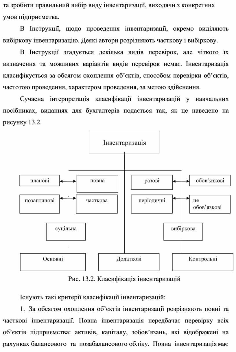 Рис. 13.2. Класифікація інвентаризацій Існують такі критерії класифікації інвентаризацій: