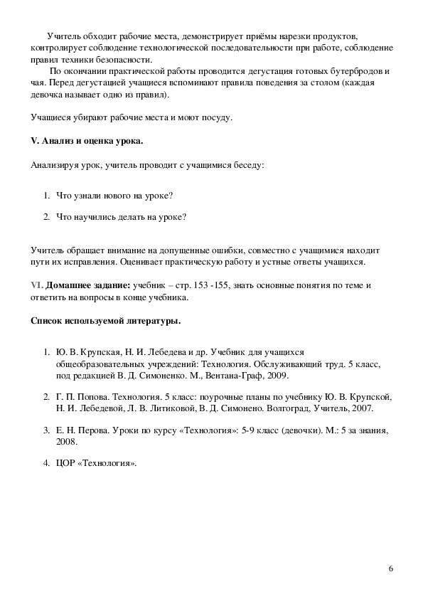2. Г. П. Попова. Технология. 5 класс: поурочные планы по учебнику Ю. В. Крупской,