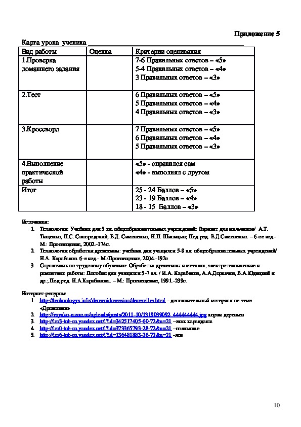Оборудование: учебник В.Д. Симоненко «Технология» 5 класс; карта урока;