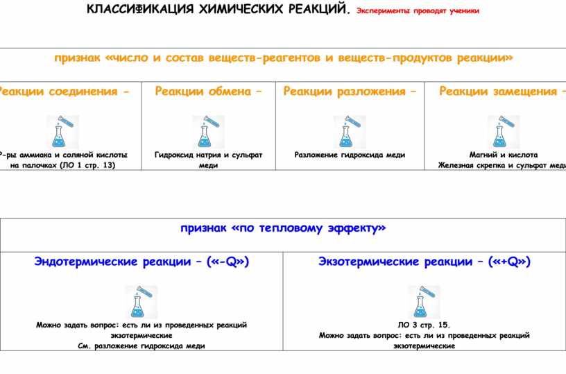 КЛАССИФИКАЦИЯ ХИМИЧЕСКИХ РЕАКЦИЙ. Эксперименты проводят ученики