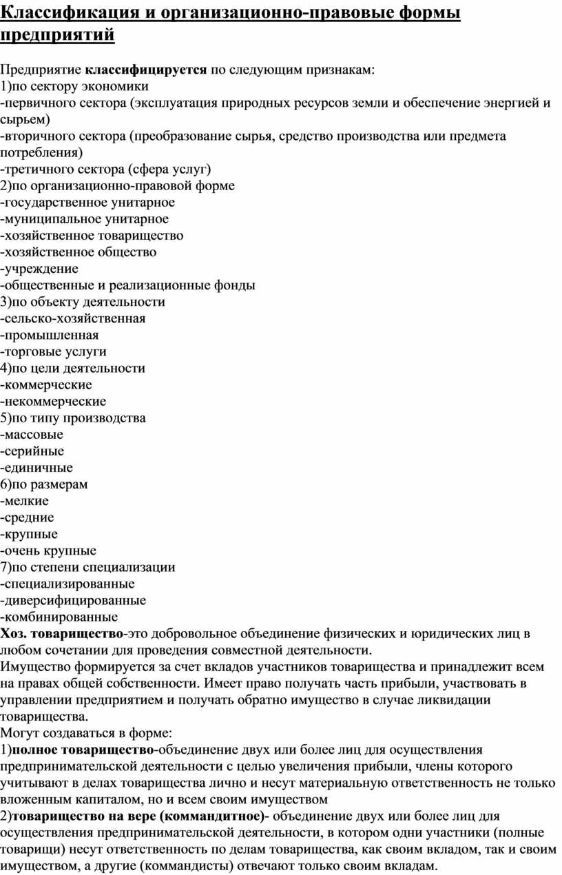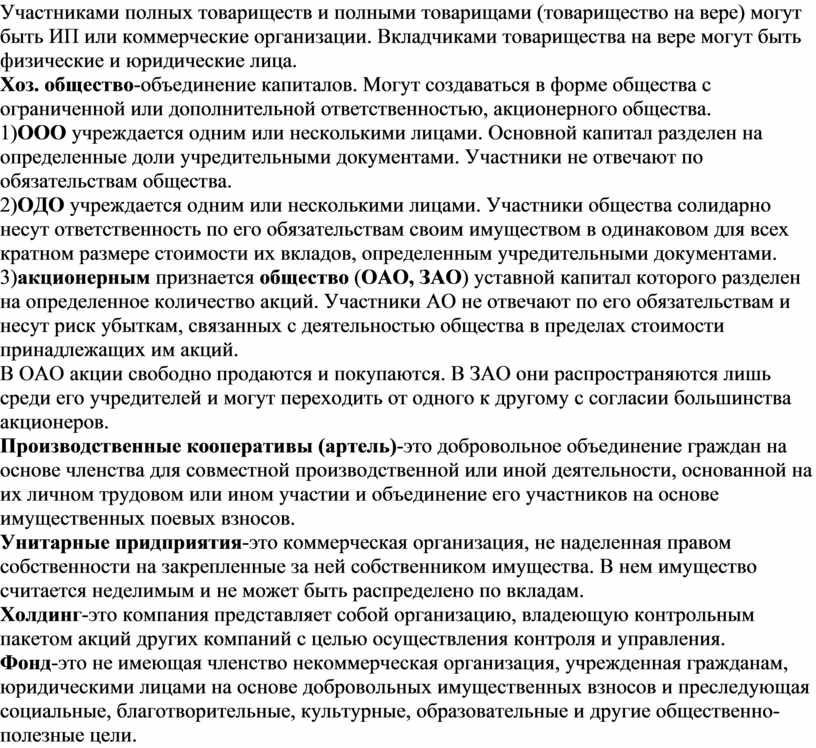 1)полное товарищество-объединение двух или более лиц для осуществления предпринимательской деятельности с целью увеличения прибыли, члены которого учитывают в делах товарищества лично и несут материальную ответственность не только вложенным капиталом, но и всем своим имуществом