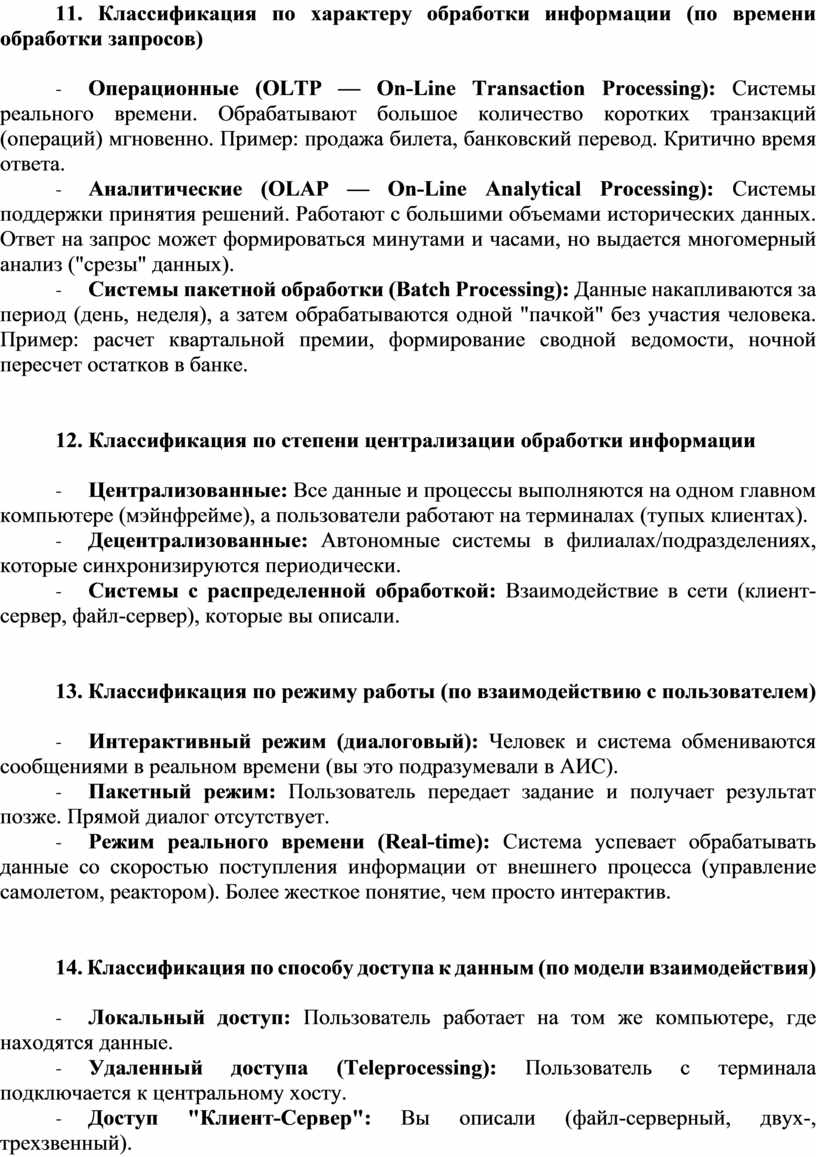 11. Классификация по характеру обработки информации (по времени обработки запросов)