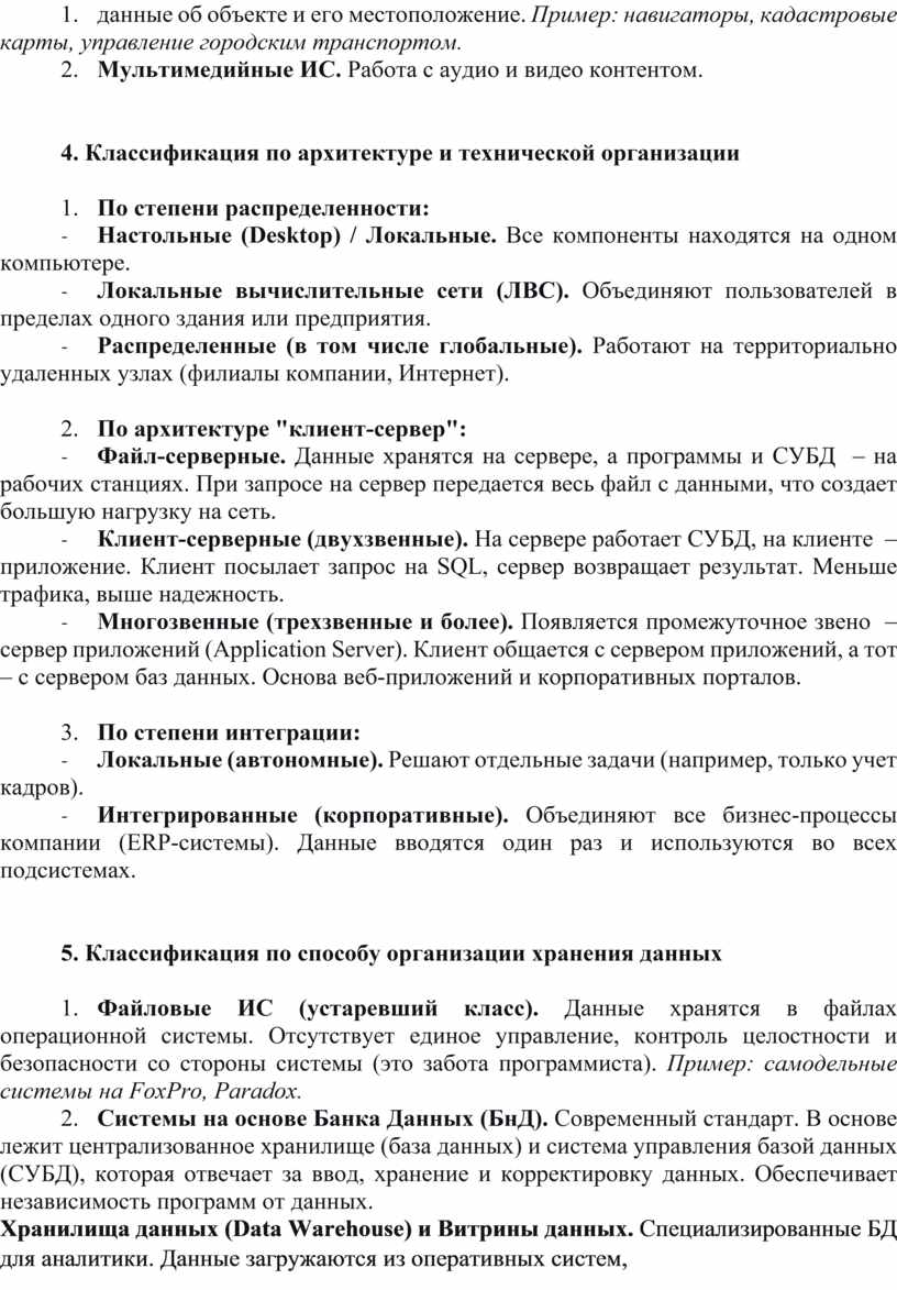 4. Классификация по архитектуре и технической организации