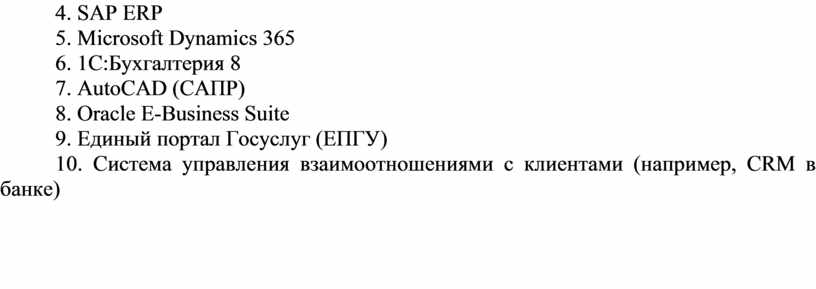 10. Система управления взаимоотношениями с клиентами (например, CRM в банке)