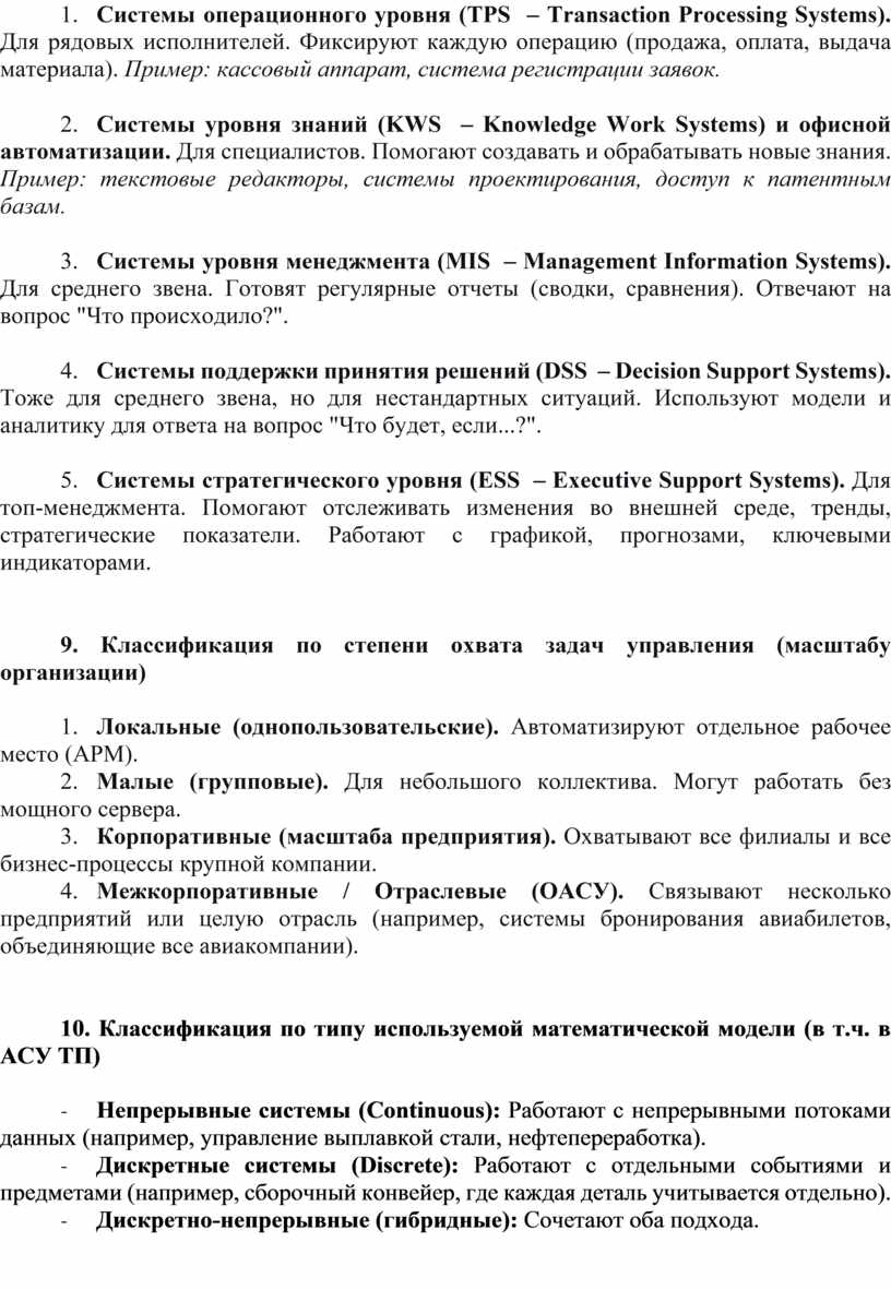 · По уровню управления: Операционный + Уровень менеджмента.