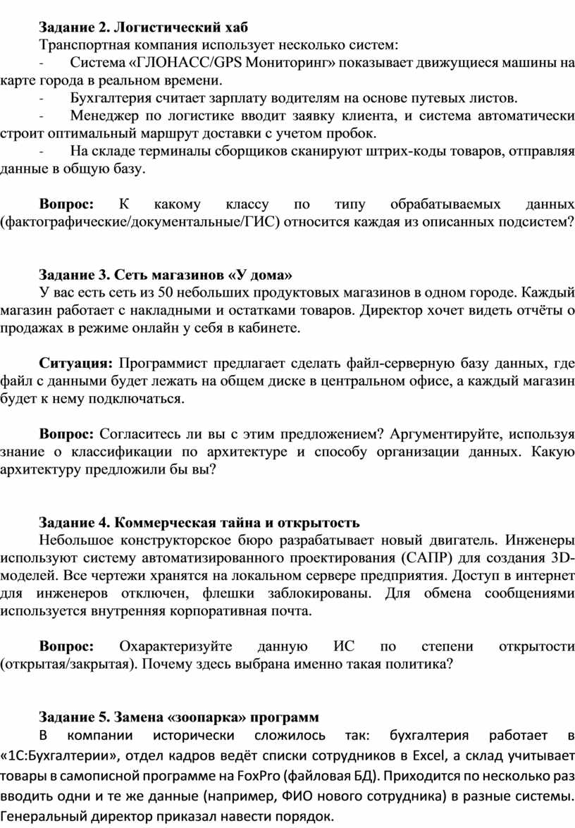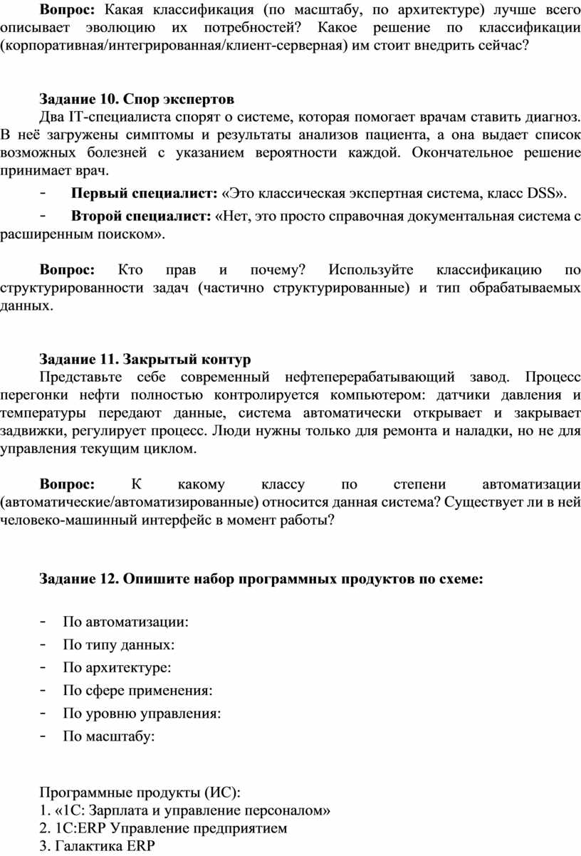 1. ИС для структурированных (формализуемых) задач. Задача, где известны все элементы и взаимосвязи. ИС работает как вычислитель. Пример: расчет заработной платы. Есть четкие формулы и алгоритмы. Такие системы часто называют информационно-решающими. Они делятся на два подвида: