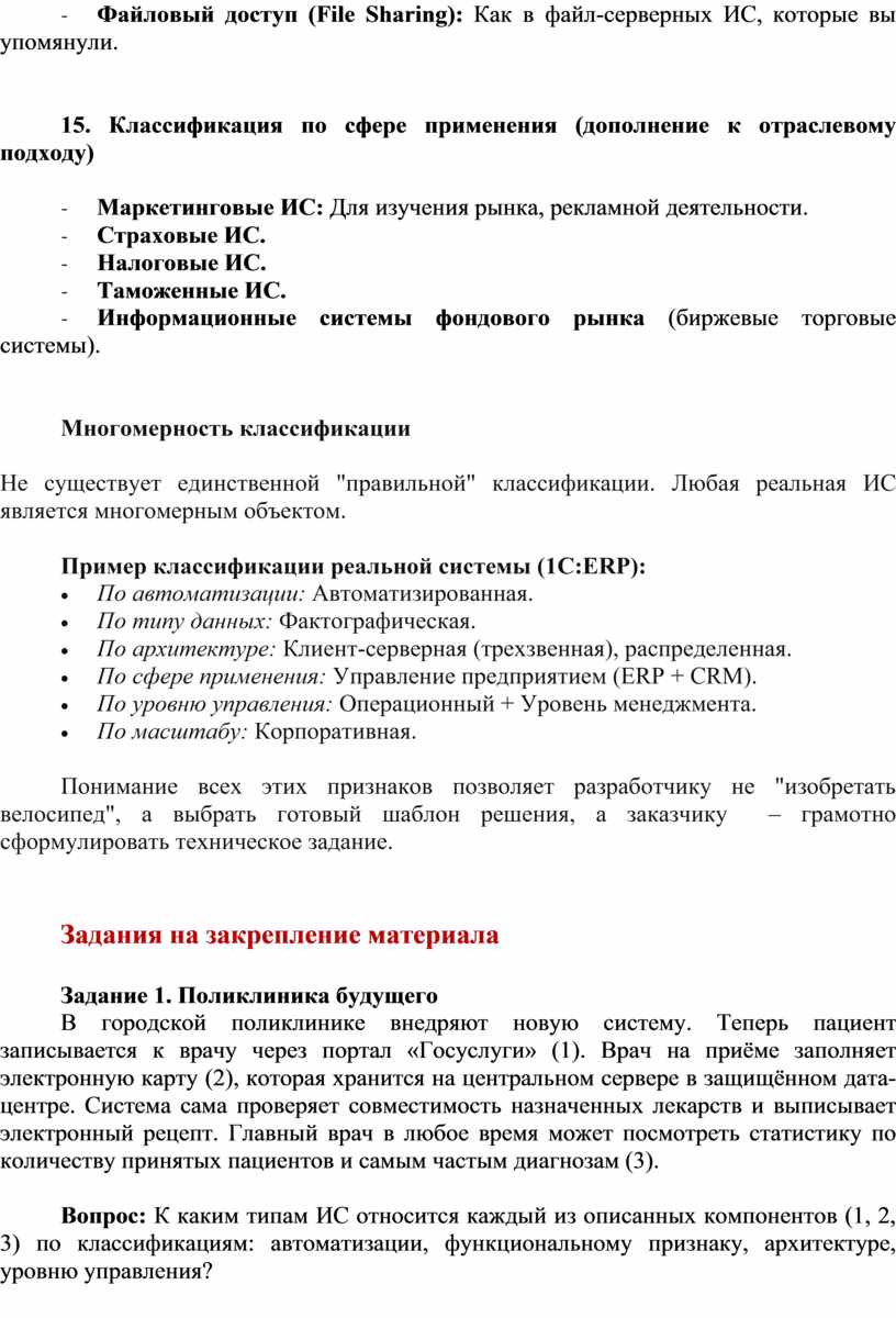 15. Классификация по сфере применения (дополнение к отраслевому подходу)