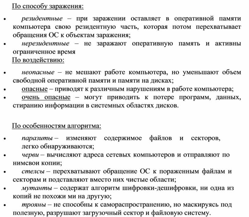 ·               неопасные не мешают работе компьютера, но уменьшают объем свободной оперативной памяти и памяти на дисках;