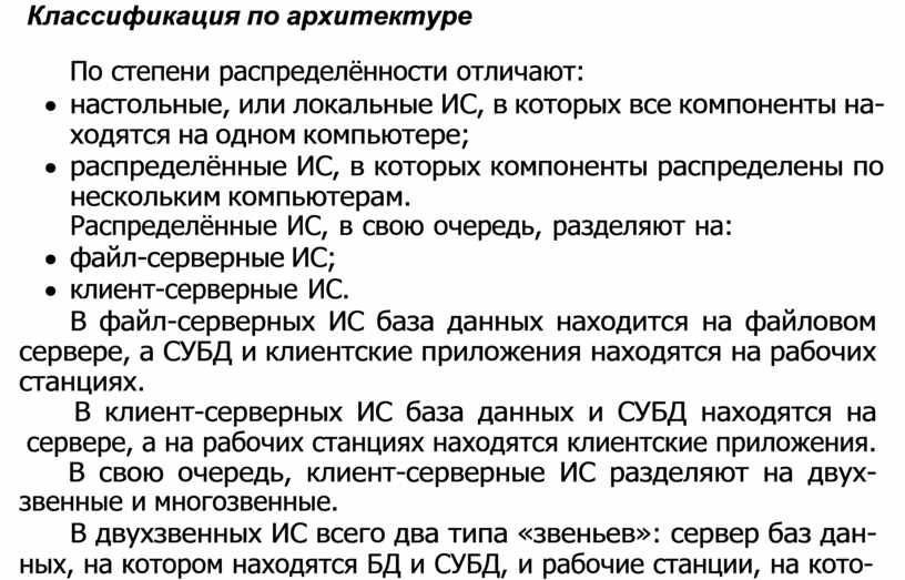 Распределённые ИС, в свою очередь, разделяют на: