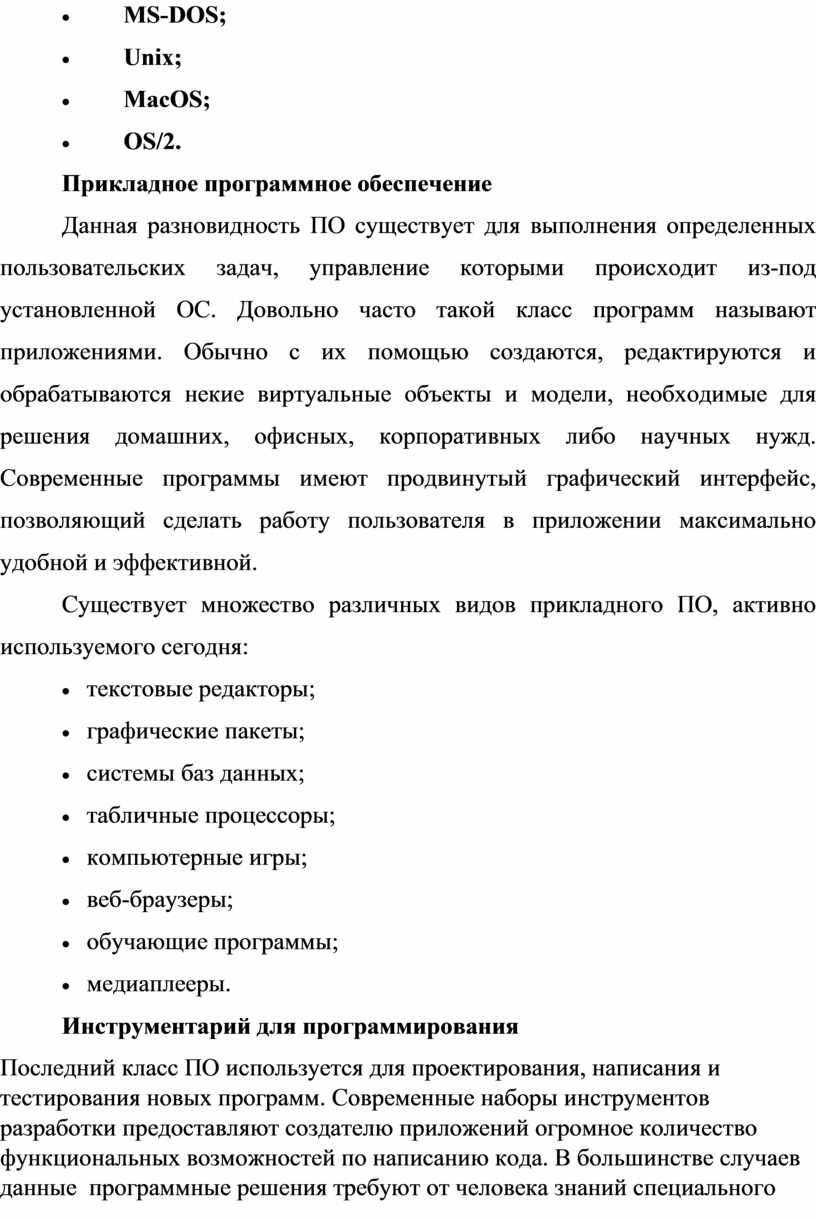 Существует множество различных видов прикладного ПО, активно используемого сегодня: