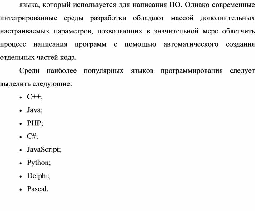 Среди наиболее популярных языков программирования следует выделить следующие: