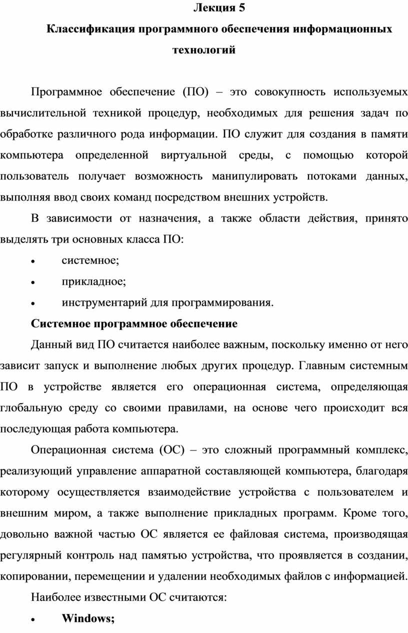 Классификация программного обеспечения информационных технологий