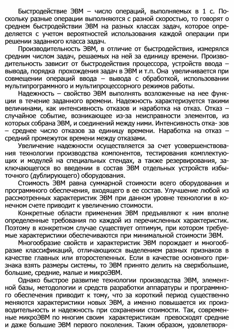 Конкретные области применения ЭВМ предъявляют к ним вполне определенные требования по каждой из перечисленных характеристик. Поэтому в конкретном случае существует оптимум, при котором требуе- мые характеристики обеспечиваются при минимальной стоимости ЭВМ.