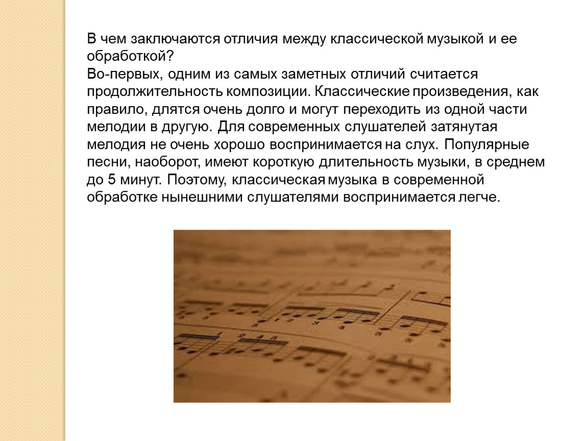 В чем заключаются отличия между классической музыкой и ее обработкой?
