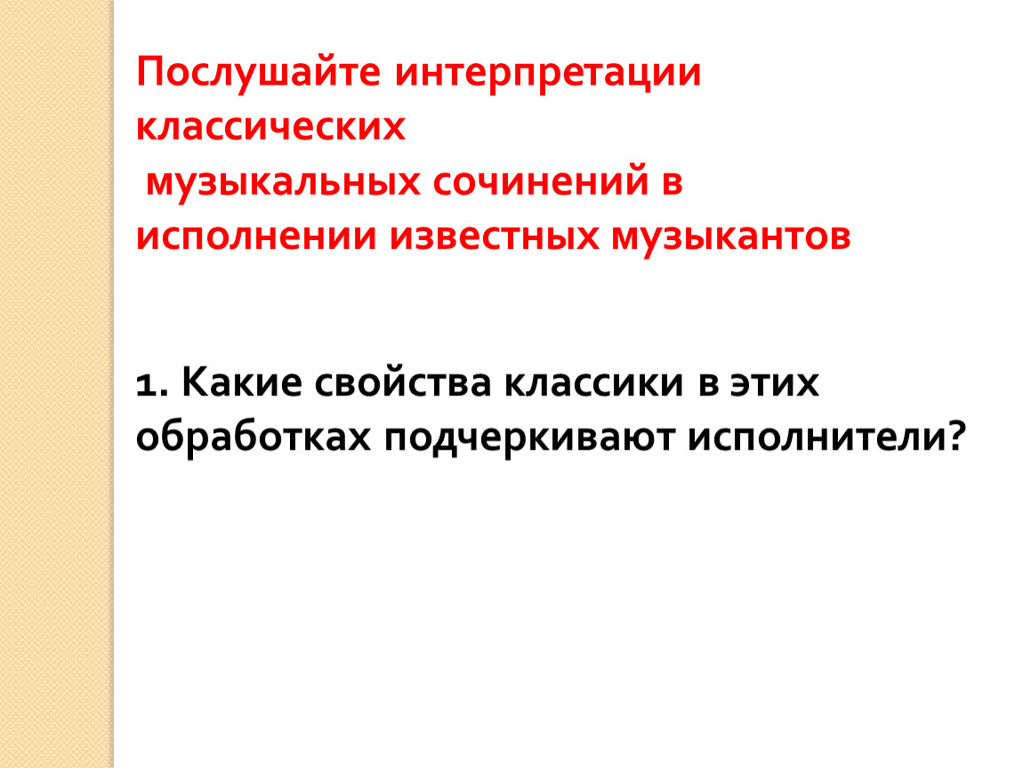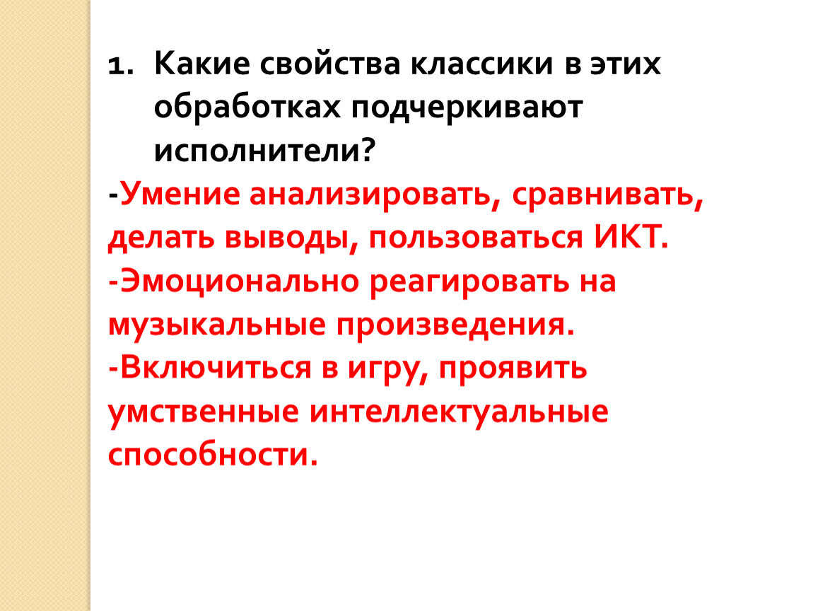 1. Какие свойства классики в этих обработках подчеркивают исполнители?