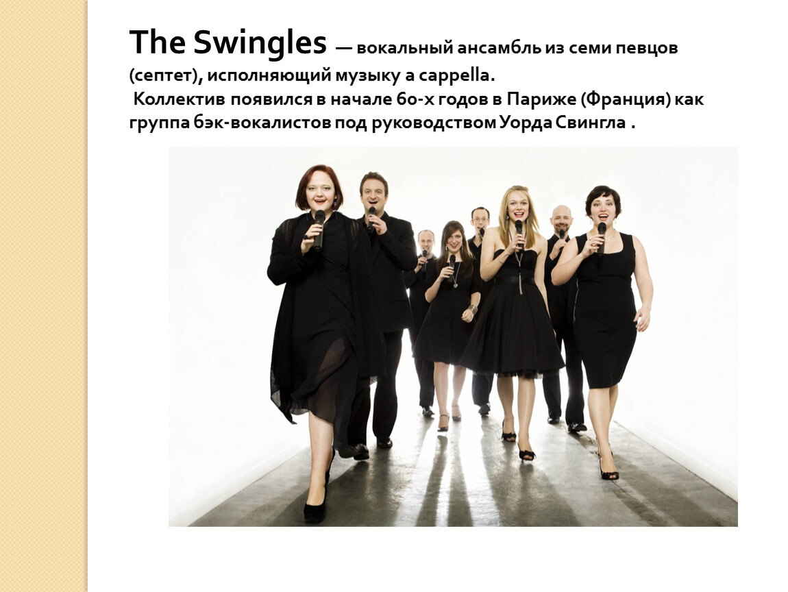 The Swingles — вокальный ансамбль из семи певцов (септет), исполняющий музыку a cappella.