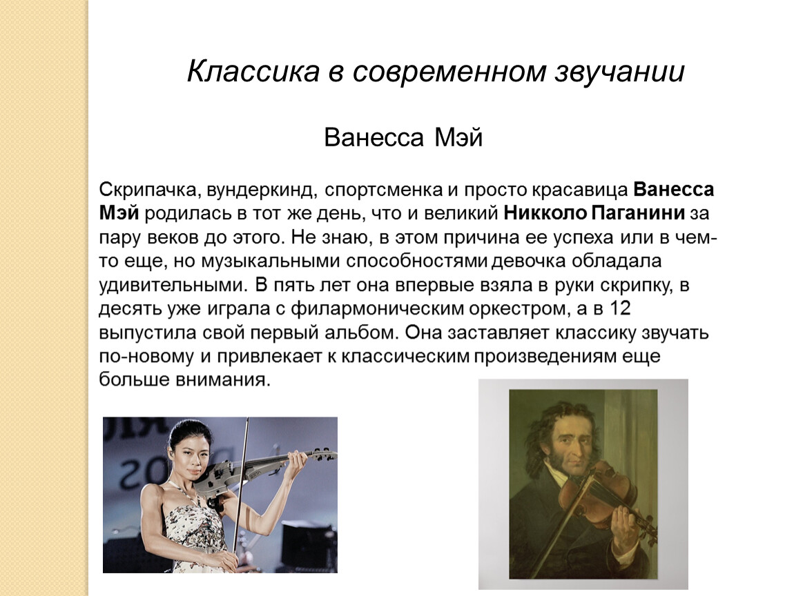 Скрипачка, вундеркинд, спортсменка и просто красавица Ванесса Мэй родилась в тот же день, что и великий Никколо Паганини за пару веков до этого. Не знаю, в этом причина ее успеха или в чем-то еще, но музыкальными способностями девочка обладала удивительными. В пять лет она впервые взяла в руки скрипку, в десять уже играла с филармоническим оркестром, а в 12 выпустила свой первый альбом. Она заставляет классику звучать по-новому и привлекает к классическим произведениям еще больше внимания.