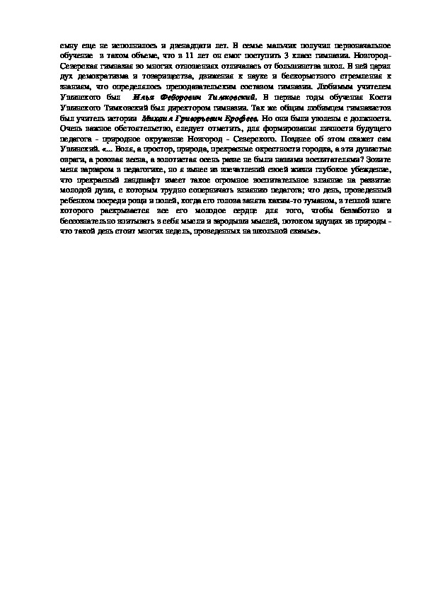 Ушинский. «... Воля, а простор, природа, прекрасные окрестности городка, а эти душистые