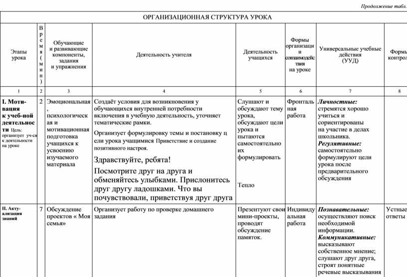 ОРГАНИЗАЦИОННАЯ СТРУКТУРА УРОКА |