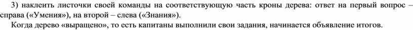 Когда дерево «выращено», то есть капитаны выполнили свои задания, начинается объявление итогов.