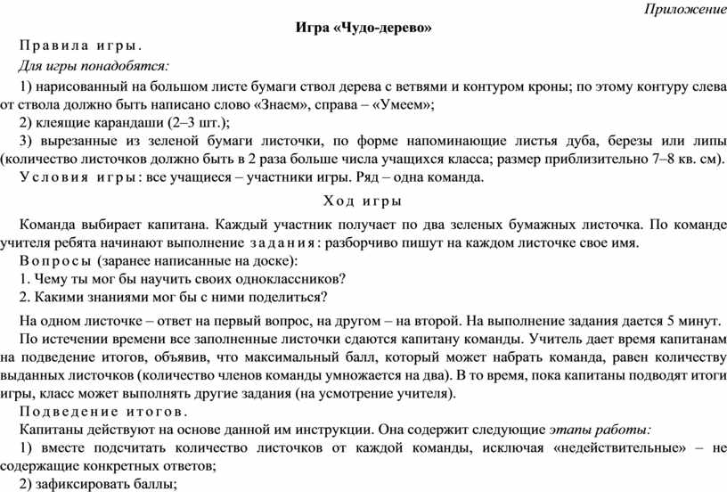 3) вырезанные из зеленой бумаги листочки, по форме напоминающие листья дуба, березы или липы (количество листочков должно быть в 2 раза больше числа учащихся класса; размер приблизительно 7–8 кв. см).