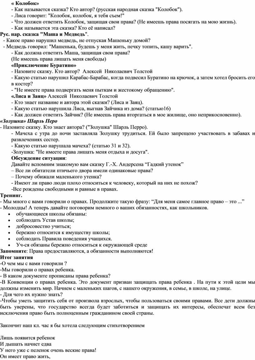 - Рассмотрев рисунок, вы должны определить название сказки и автора. Основываясь на статьях Конвенции о правах ребенка, сказать: какие права здесь нарушены, и помочь сказочному герою защитить свои права.