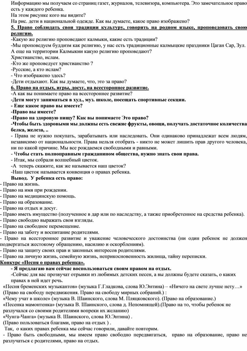 -Сейчас для вас прозвучат отрывки из любимых детских песен, а вы должны будете сказать, о каких правах в ней идет речь.